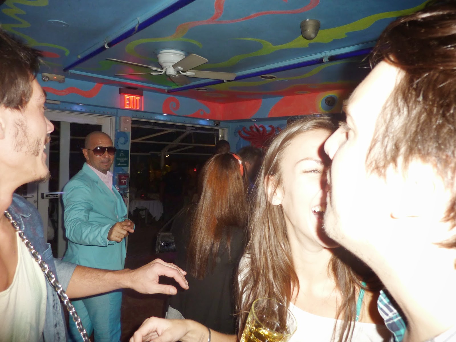 As we begin to leave the club it starts getting a little crazier. A girl stops and strikes up a conversation with Mr Pimpbull. Meanwhile a guy sitting behind at the bar shouts out to anyone listening “Hey it’s Pitbull! – It’s Pitbull everyone!!!” After which all you hear is a wave of voices shouting to get his attention and fighting through the crowd to get to Mr Pimpbull. It was not a situation where we could even be heard to let it be known that it’s a Pitbull impersonator. For his safety, time to make a path, a swift exit and get out of there. We finally get out on street where we think we are safe but that is not the case as someone outside had heard the guy inside shouting and so started shouting “Pitbull!” outside the venue starting creating another wave of people heading towards him in a crowd. No one was listening. It was time to leg it! It suddenly dawned on me what the REAL Pitbull must go through trying to do basic things as simple as just wanting to go on a quiet walk alone.