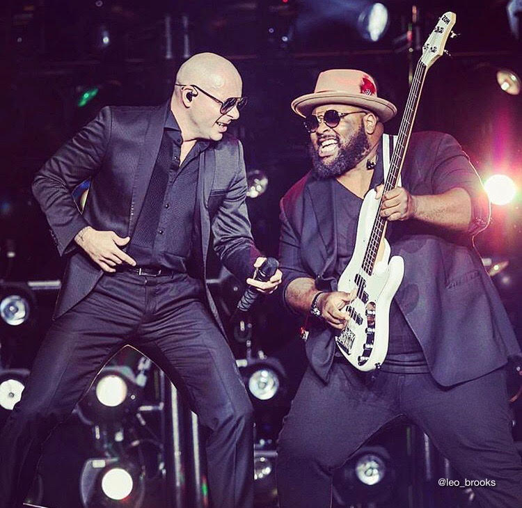Watching a Live performance from accomplished bassist Leo Brooks is a such treat. What Leo does with the bass guitar is what Pitbull does to rhymes. Locks you in with 100% engagement with his skills, energy and vibe. With his strong onstage presence and connection with the crowd felt. Even Pitbull gets in on the act with those signature air guitar session moments on stage together!