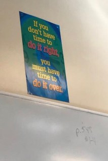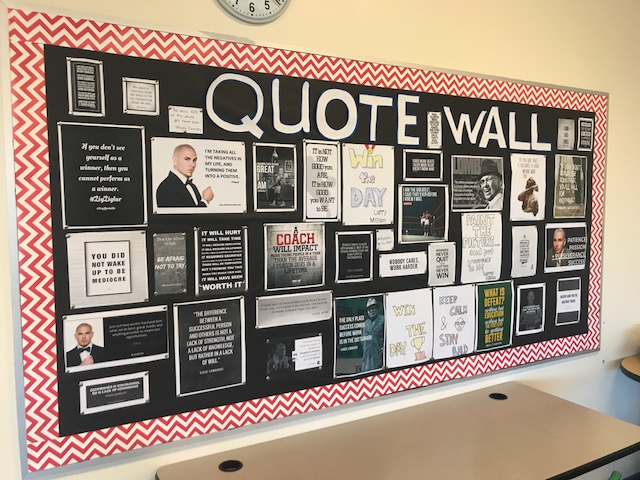 Mr Rivera’s lesson starts even before his class does when you will find Mr Rivera standing outside his class during class switch overs in the corridor holding his quote on the board “The Old You And The New You Cannot Co-Exist, Eliminate One!” A tough, chilling, perhaps shocking reminder to make a choice and take action. Either way, very impactful. To recognise and decide which one you want to be. Inside the classroom, motivational quotes on and around the whiteboard and walls. Plenty of thought provoking words and phrases within. In addition to these inspirational quotes Mr Rivera has a Sports Vocabulary Drawing Wall (see video below) where students are given a math topic and assigned to draw a picture and make that math topic relate to sport (See video of student Juan Garcia below)