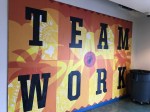 Mural on side of wall by the walkway connecting SLAM 1 and SLAM 2 which are put up by the Miami Heat. Look closer and there is a touch of Pitbull’s catchphrase amongst other elements of basketball and Little Havana: